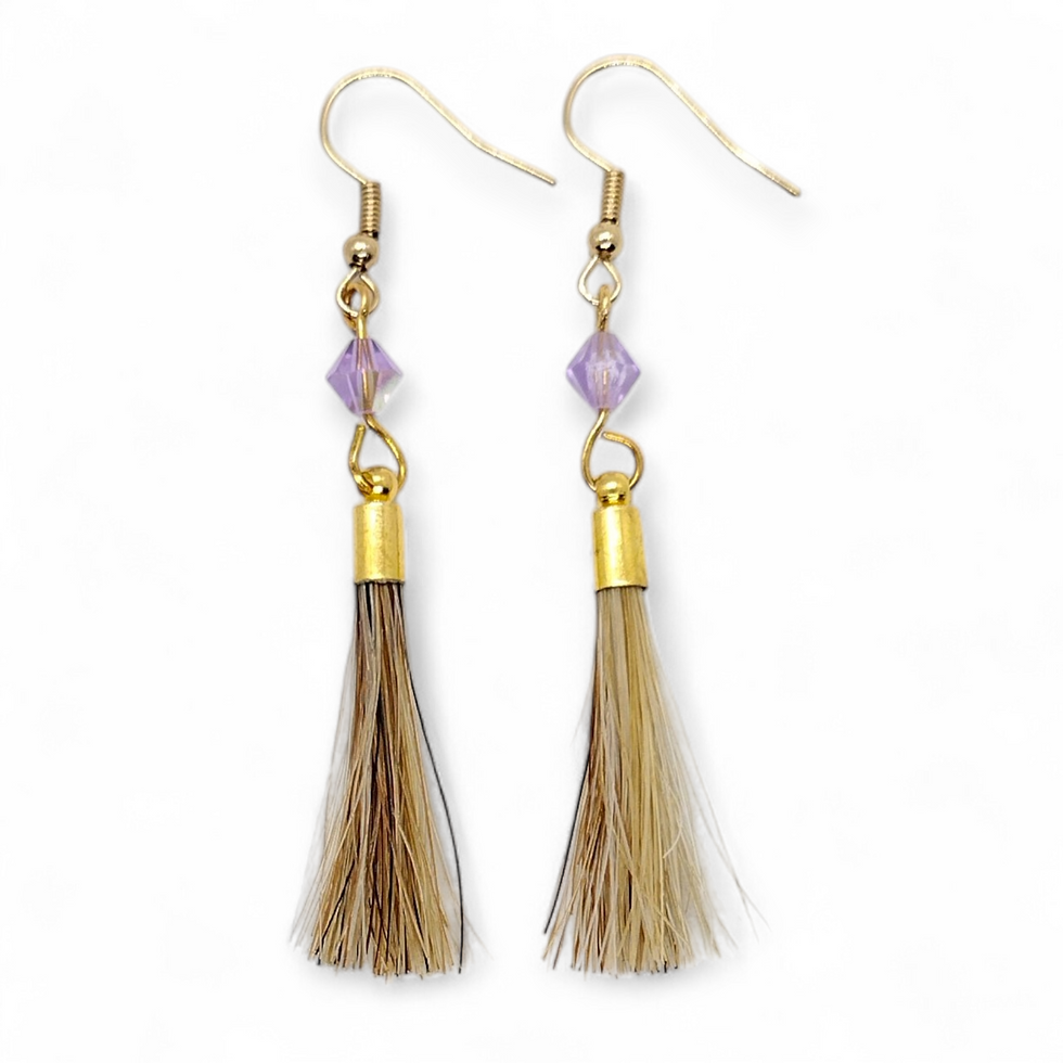 The plain bridle tag is a simple design that pairs a custom name tag with a lock of horse hair. A large lobster claw clasp adorns the top. This keepsake is free of any additional embellishments.